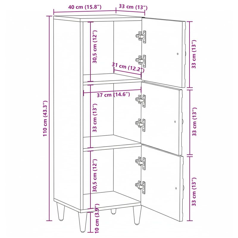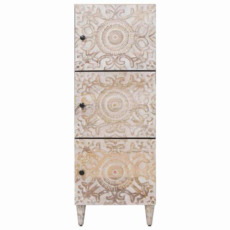 Висок шкаф с рафт Бяло 40 x 33,5 x 110 см Солидно мангово дърво