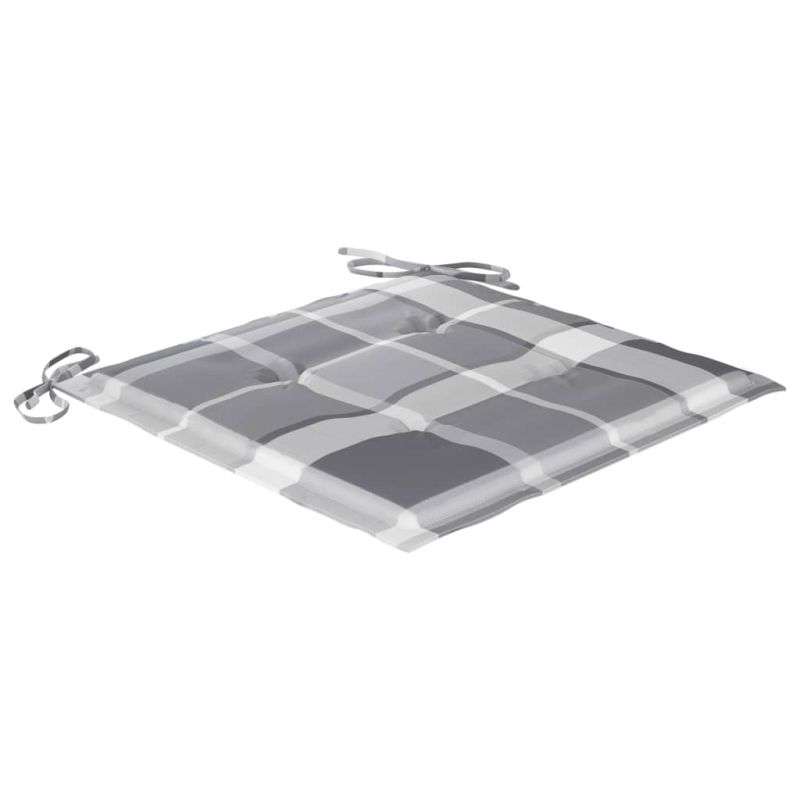 Градински столове с възглавници сиво каре 4 бр тик масив