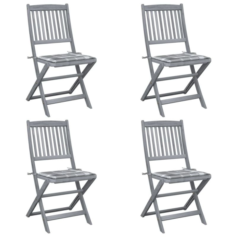 Сгъваеми градински столове, 4 бр, възглавници, акация масив