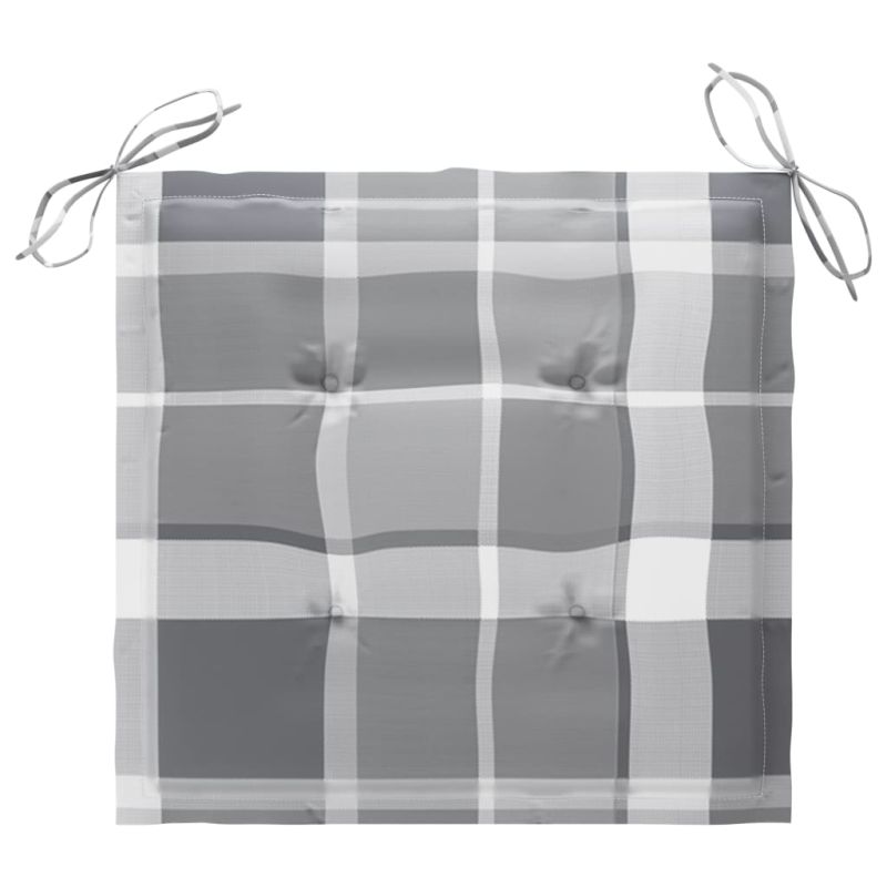 Градински столове, възглавници със сиво каре, 4 бр, тик масив