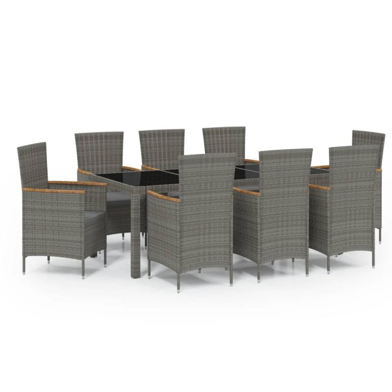 Външен трапезен комплект от 9 части с възглавници полиратан сив