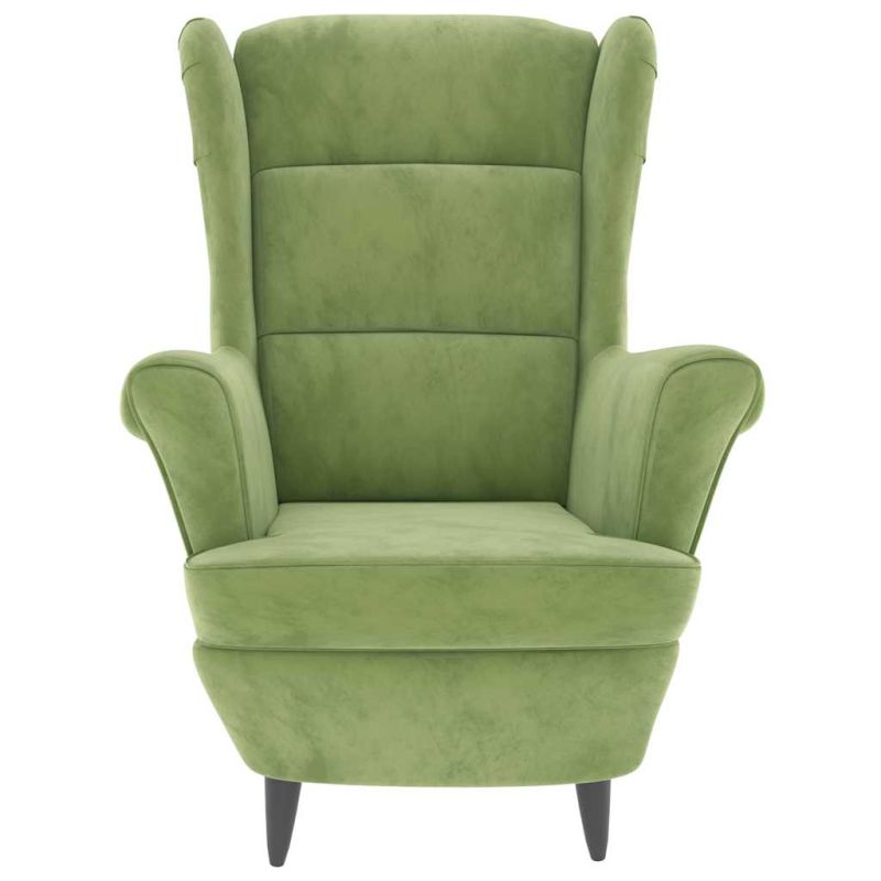 Фотьойл Wingback с табуретка, светлозелено, кадифе