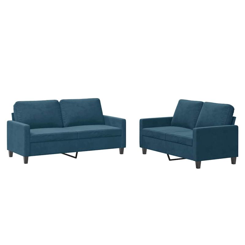 Комплект дивани от 2 части с възглавници, син, кадифе