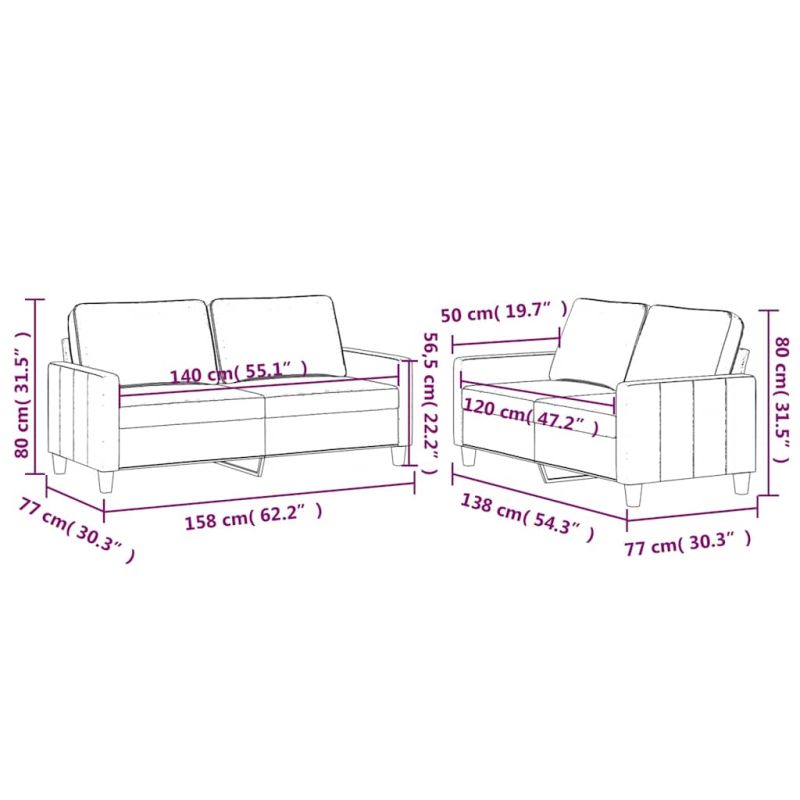 Този комплект дивани е отлично място за вашето време за разговори, четене, гледане на телевизия или просто почивка. Той е предназначен да бъде фокусна точка във вашия дом. Меко кадифе: Кадифето е мека и удобна материя, която се усеща приятно върху кожата.Здрава и стабилна рамка: Шперплатът и металната рамка на седалката на дивана осигуряват здравина и стабилност.Удобна седалка: Диванът е много удобен с дебело подплатената седалка и подлакътници. Максимално 110 кг на седалка. Съобразете се с риска от открит огън и други източници на силна топлина в близост до продукта.
