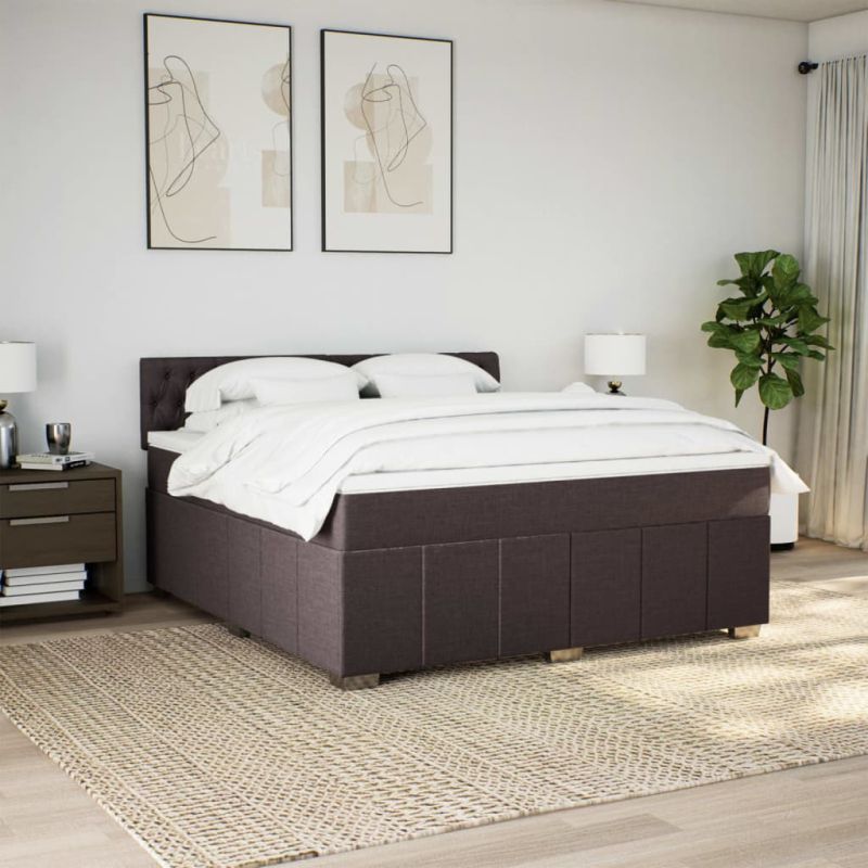 Боксспринг легло с матрак, тъмнокафяво, 180x200 см, плат