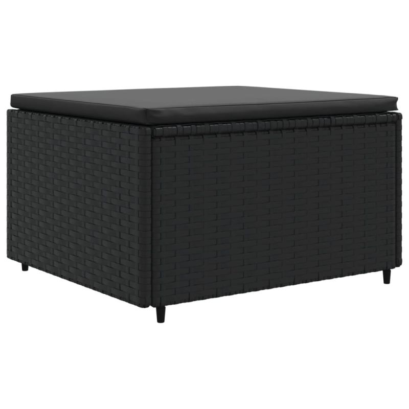 Градински комплект с възглавници, 6 части, черен, полиратан