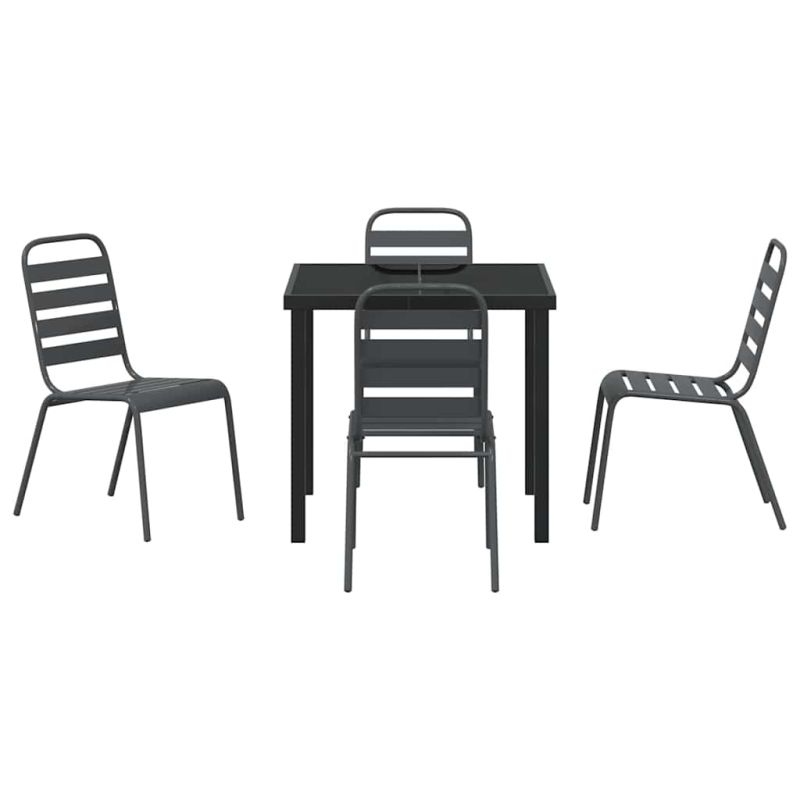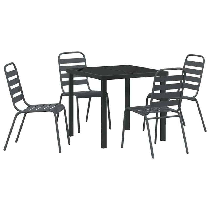 Този комплект за хранене в промишлен стил добавя уникален вид на всяка градина или тераса с формата си и здравото си строителство. Проектиран е за външна употреба, има минималистичен, но функционален дизайн, който е в тон с модерната естетика. С привлекателен антрацитен нюанс и изискан вид, комплектът се превръща в идеалната акцентна част за събирания или уютни вечери, като подобрява опита ви на открито с елегантност и практичност. Материали Комплектът с антрацитен цвят е направен от прахово боядисана стомана, което осигурява здравина и отлично представяне навън. Масата от закалено стъкло добавя лукс и предлага надеждна повърхност, устойчива на различни климатични условия, което го прави перфектен както за стил, така и за функционалност. Включени компоненти Спокойната комбинация от елементи от прахово боядисана стомана придава цялостен вид. Включва стилни крака и рамка, които придават индустриален стил и допълват съвременния външен интериор. Тази конструкция осигурява стабилност и комфорт при хранене. Характеристики Проектиран за външен вид, комплектът е устойчив на сезонни износвания. Праховото покритие добавя защитен слой, който повишава издръжливостта и естетическата привлекателност, идеален за релаксиращи вечери в градината с близки и приятели. Препоръчителни употреби Проектиран е за градини и тераси, идеален за пролетта и лятото. Неговият многопрофилен дизайн съчетава формални хранителни изживявания или уютни събирания, без проблеми се влива в различни среда, осигурявайки функционалност и стил. Грижи и поддръжка За максимална издръжливост, покривайте комплекта, когато не го ползвате. Въпреки здравата си конструкция, редовното покритие в неактивните сезони увеличава дълготрайността му и му помага да бъде мултифункционална част от вашето открито пространство. Максимално 110 кг на седалка.