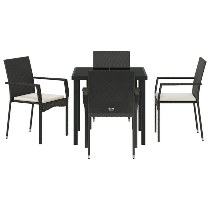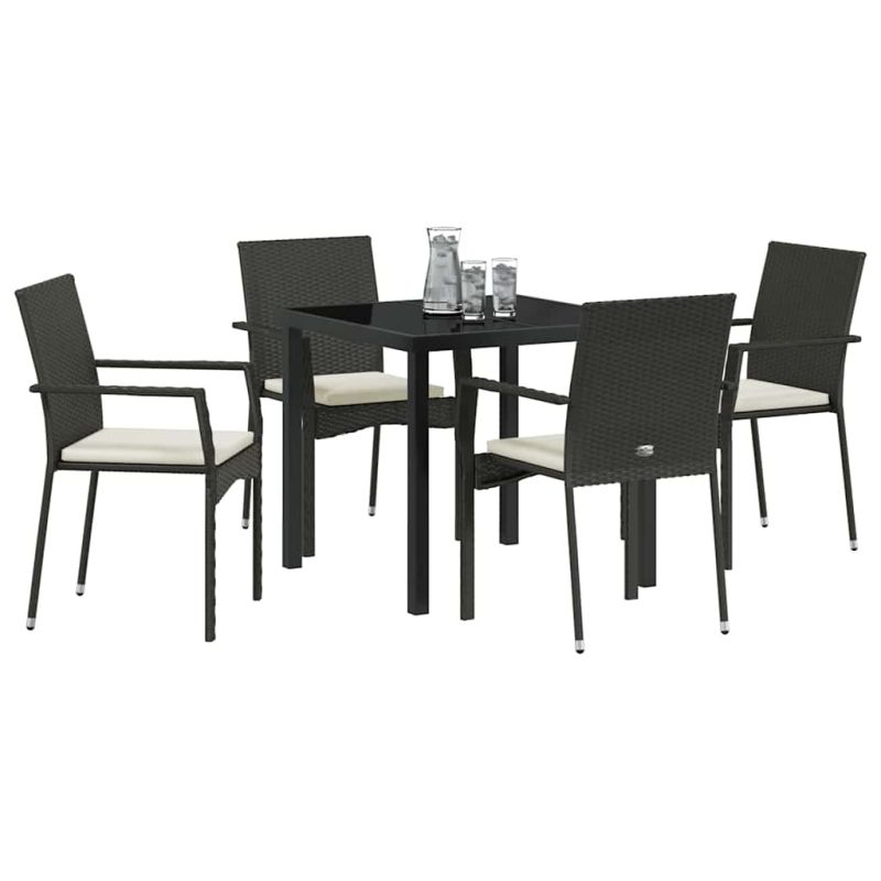 Комплект за хранене в градината 5 pcs Черно полиратан