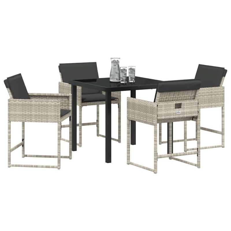 Комплект за хранене в градината 5 pcs Светлосиво полиратан