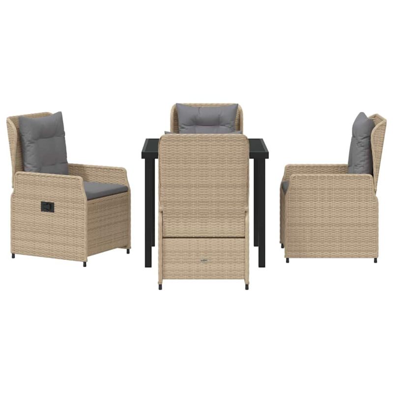 Този модерен комплект за хранене на открито предлага чудесна комбинация от стил и функционалност, подчертавайки изчистени линии и елегантни детайли. Дизайнът му го прави прекрасно допълнение за вашата градина или тераса, лесно побиращо семейни събирания или романтични вечери на открито. Предимно изработен от полиратан, неговата гладка текстура е отлично интегрирана с околната среда, осигурявайки комфорт. Подобрете живота си навън с идеалната комбинация от модерност и практичност. Дълготрайна структура: Проектиран за дълготрайна употреба, комплектът е изграден от полиратан, устойчив на всички метеорологични условия. Неговата здрава конструкция осигурява надеждност и комфорт всеки път, когато го ползвате. Регулируема облегалка: Столовете предлагат разнообразие от ъгли на облегалките, така всеки може да намери своята предпочитана позиция. Тази гъвкавост допринася за комфорт при хранене или релаксация. Повърхност от закалено стъкло: Масата е с лесна за поддръжка повърхност от закалено стъкло, устойчива на надрасквания. Модерният й дизайн добавя стил, докато служи като практична повърхност за храна и напитки. Тесни подлакътници: Комплектът с прави подлакътници от полиратан добавя комфорт, без да жертва минималистичния си стил, гарантирайки елегантен вид. Лесна поддръжка: Поддържайте привлекателността на комплекта, покривайки го, когато не го използвате, особено при лошо време. Тази лесна рутина спомага за запазване на вид и функционалност, осигурявайки дълговечност на мебелите ви. Максимално 110 кг на седалка. Съобразете се с риска от открит огън и други източници на силна топлина в близост до продукта.