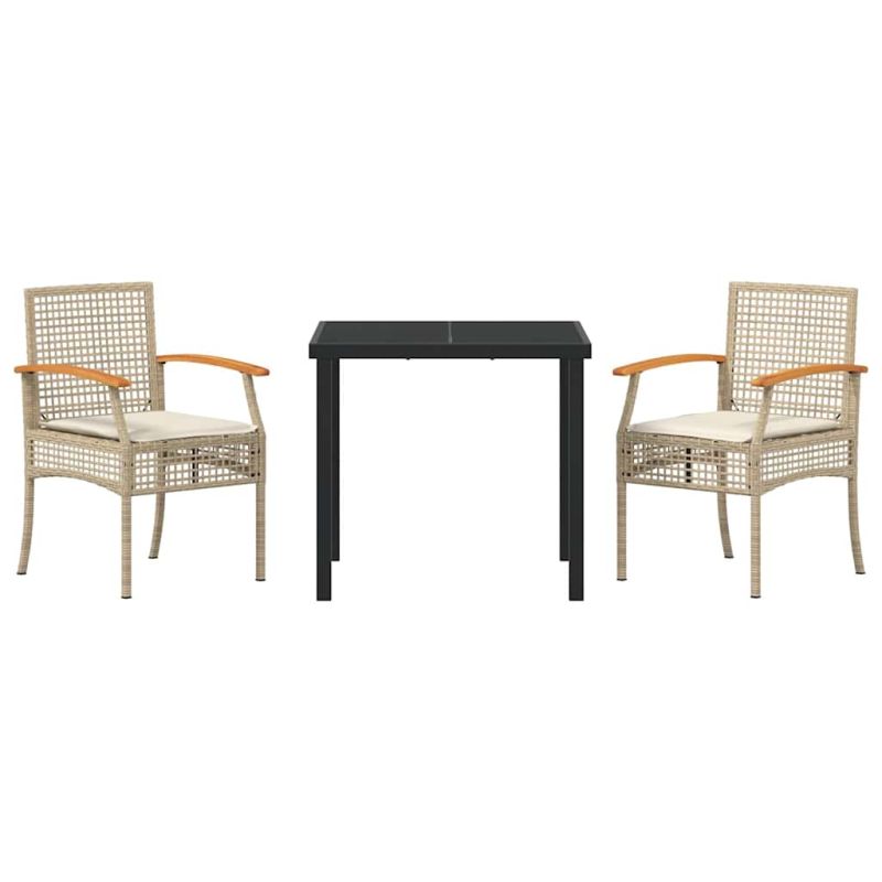 Комплект за хранене в градината 3 pcs Бежов и черен Ратан