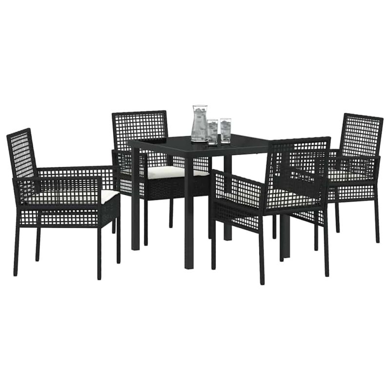 Комплект за хранене в градината 5 pcs Черно полиратан