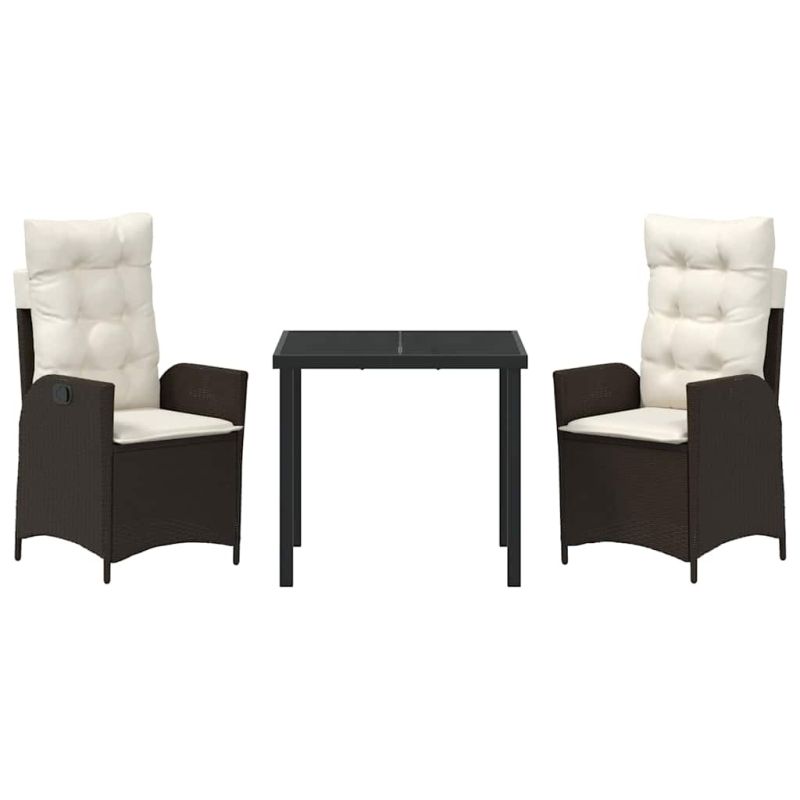 Модерният комплект за градинска трапезария е тук, за да придаде изтънчен вид на всяка тераса, веранди или градина. Създаден да бъде за летния сезон, той обединява простота и функционалност с комбинация от полиратан, стъкло и стомана. Текстурата на полиратана добавя стил към външното пространство, докато здрава стоманена рамка гарантира, че сме готови за всички летни забавления и хранене на открито. Идеалният избор за уютни семейни обеди или приятелски срещи под открито небе. Издръжлива конструкция: Създаден с качествени материали, нашият комплект за градинска трапезария е устойчив на всякакви метеорологични условия. Полиратанът е супер за седалките, предоставяйки удобство, а стоманената рамка дава стабилност и поддържа всичко на място дори с времето. Стъклени повърхности на масата: Завършена с черна стъклена повърхност, масата предостявя шикозно и лесно за поддържане пространство за хранене. Просторната стъклена маса не само добавя стил, но и е идеална основа за декорации. Този елемент увеличава както функционалността, така и естетиката. Регулируем комфорт: С многопозиционната облегалка направихме удобството приоритет. Ръчното регулиране ви позволява да се отпуснете в удобни позиции, идеално за дълги часове с близките. Работим за вашата наслада и добрата форма на един невероятен комплект. Ергономичен дизайн: Леко извити полиратанови подлакътници и изчистен дизайн на краката се комбинират за един модерен вид. Всеки елемент е добре обмислен, за да осигури удобство и ергономично изживяване, без да се жертва стилът. Седалките предлагат комфорт без компромиси. Грижа за мебелите: Препоръчваме да покривате комплекта, когато не го използвате, особено при неблагоприятно време. Грижейки се за това, можете да удължите живота и елегантността на комплекта. Следвайте тези прости стъпки, за да запазите формата му за по-дълго време. Максимално 110 кг на седалка. Съобразете се с риска от открит огън и други източници на силна топлина в близост до продукта.