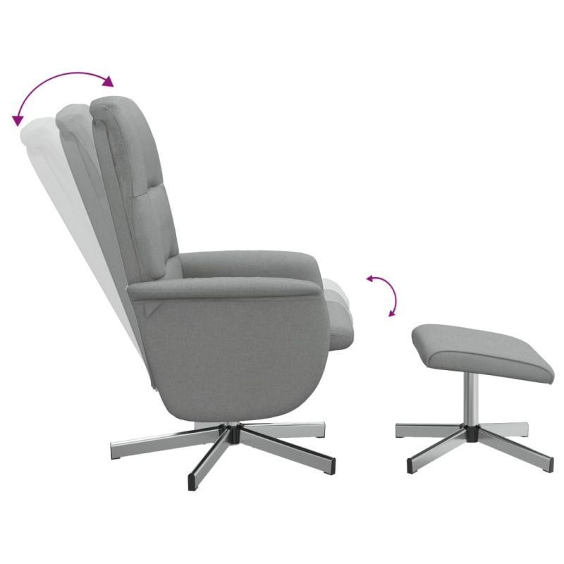 Начало Дом и градина Мебели Столове Фотьойли, кресла и разтегателни фотьойли Накланящ се стол с табуретка за крака, светлосив, текстил