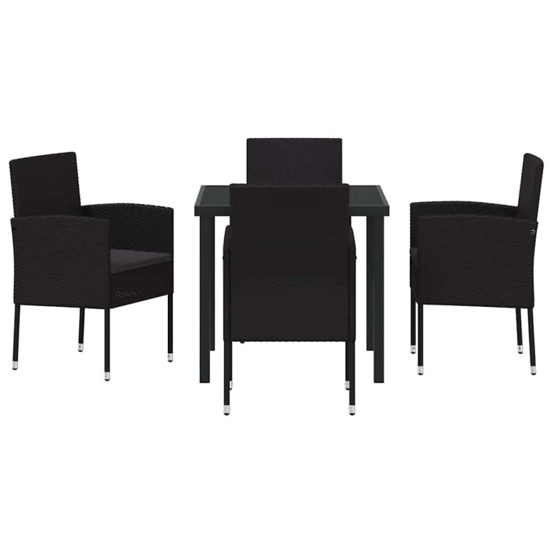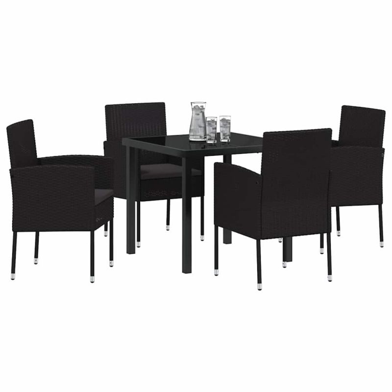 Комплект за хранене в градината 5 pcs Черно полиратан