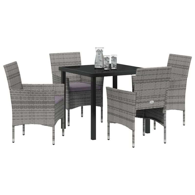 Комплект за хранене в градината 5 pcs Сив полиратан