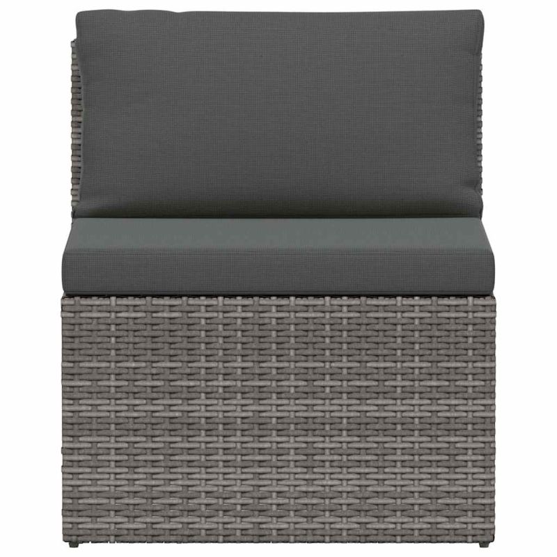 Градински комплект с възглавници, 4 части, сив полиратан