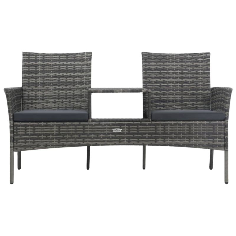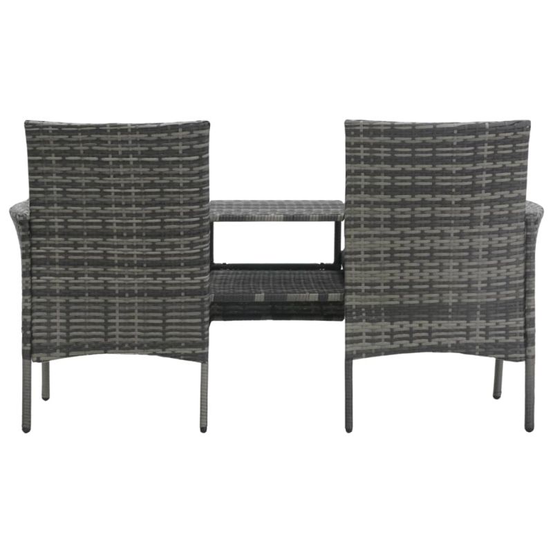 2-местен градински диван с чаена масичка, полиратан, антрацит