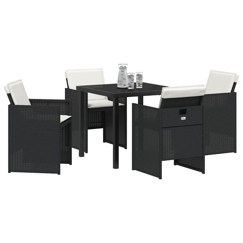 Комплект за хранене в градината 5 pcs Черно полиратан