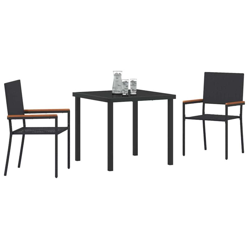 Комплект за хранене в градината 3 pcs Черно полиратан