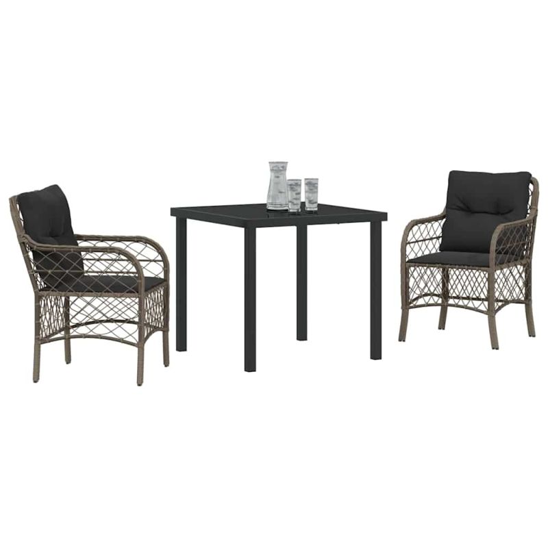 Комплектът Modern за хранене в градината съчетава стил и уют с прахово боядисана стомана и полиратан. Неговият минималистичен дизайн прави всяко хранене на открито приятно. Приветливата обстановка е идеална за събирания с близки на слънчеви тераси или в градина. Този комплект добавя модерен акцент във вашето пространство и прави всяко ястие повод за празнуване. Модерна конструкция: Изработен от прахово боядисана стомана и полиратан, този комплект е здрава, но и визуално привлекателна. Устойчив на атмосферни условия и гарантира свеж вид. Удобство: Включва възглавници от устойчива на времето материя, с подвижни калъфи, които улесняват поддръжката. Стъклена маса: Chic закалена стъклена маса, която добавя стил и удобство, лесна за почистване. Лесна поддръжка: Използвайте покритие, когато не е в употреба – така ще предпазите комплекта от атмосферните условия. Ергономични подлакътници: Меките полиратанови подлакътници осигуряват комфорт по време на храненето. Идеален е за незабравими моменти с приятели или семейство. Максимално 110 кг на седалка. Съобразете се с риска от открит огън и други източници на силна топлина в близост до продукта.
