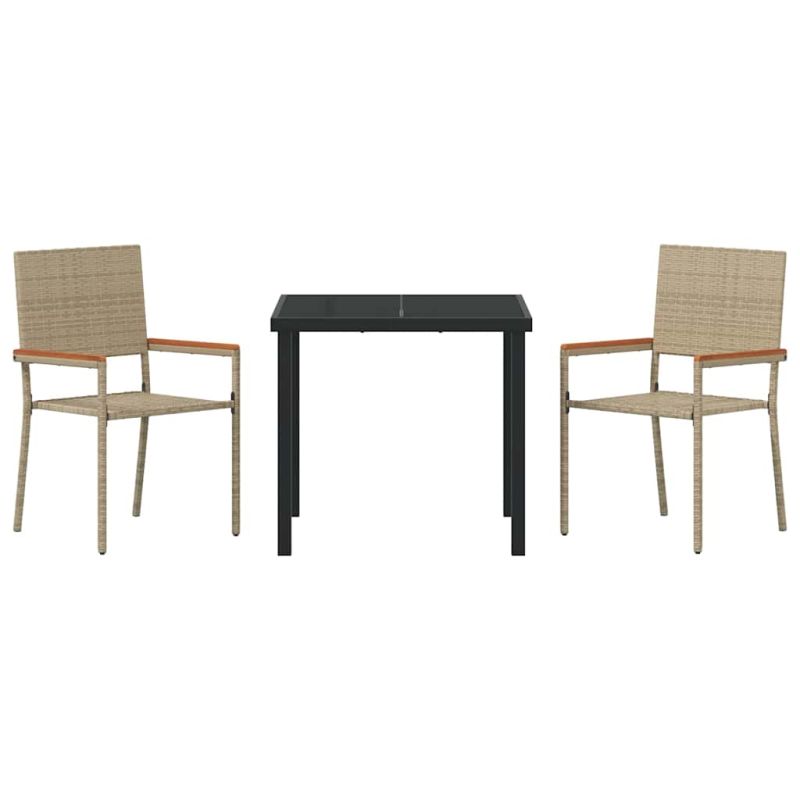 Този модерен комплект за хранене в градината е идеален акцент за всяко събиране на открито. Излъчва стил и се вписва прекрасно в съвременния декор. Издържа на времето, съчетава простота и функционалност, създавайки приветливо място за семейни хранения или срещи с приятели. Чистите линии и минималистичният дизайн го правят универсален, а материалите обещават качество и визия през всички сезони. Материали: Комплектът включва издръжлив полиратан с модерен вид, идеален за външна употреба. Закаленото стъкло е елегантно, устойчиво на метеорологични условия и лесно за почистване, добавяйки шикозен стил към градината. Включени компоненти: Столовете с удобни възглавници предлагат комфорт с UV-устойчива тъкан, а масата има закален стъклен плот, какви удобни акациеви подлакътници и прахово боядисани крака. Всеки елемент допринася за приятни хранения на открито. Характеристики / Функция / Дизайн: Леката конструкция позволява на комплекта да се мести с лекота. Прахово боядисаната стомана дава дълготрайност, а UV устойчивостта поддържа добрия вид с времето. Препоръчителни употреби: Комплектът е чудесен за градини, патио или тераси и създава сладка атмосфера за летни хранения и срещи. Модерният стил го прави идеален за неформални или изискани събиралия. Грижа & Поддръжка: Защитете комплекта с покривало, когато не се използва. Поддръжката му е лесна - просто почистване и периодично извършване на избърсване, за да избегнете натрупването на замърсявания и да съхраните красотата му.