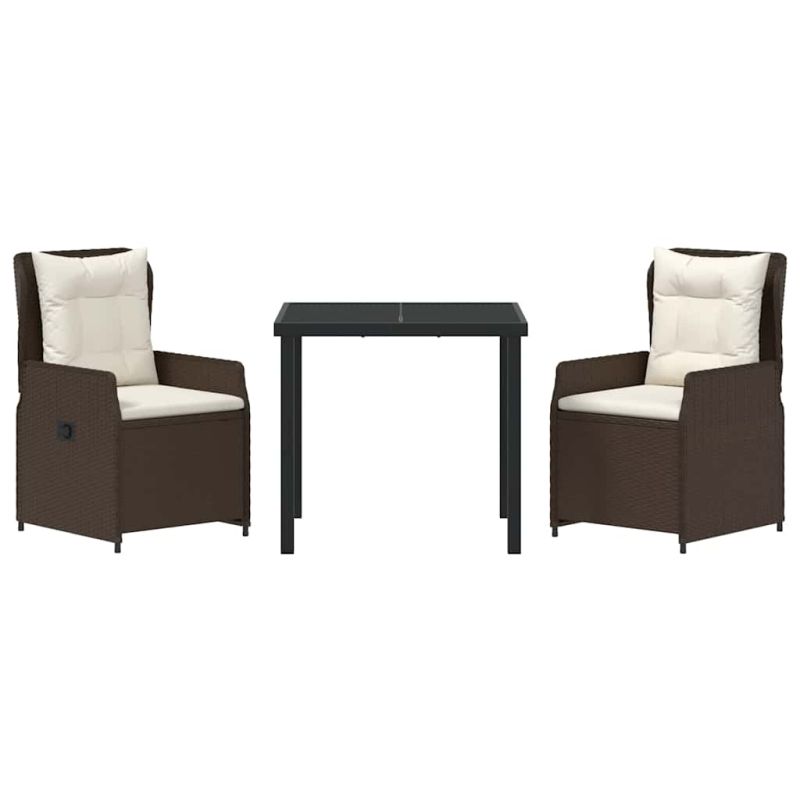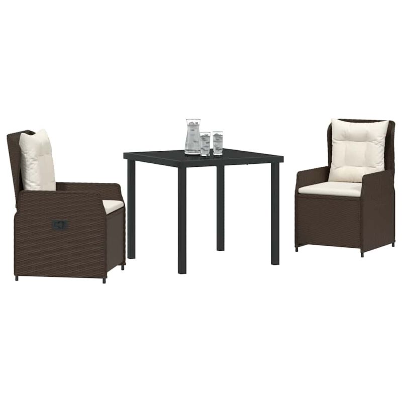 Този модерен комплект за хранене на открито предлага чудесна комбинация от стил и функционалност, подчертавайки изчистени линии и елегантни детайли. Дизайнът му го прави прекрасно допълнение за вашата градина или тераса, лесно побиращо семейни събирания или романтични вечери на открито. Предимно изработен от полиратан, неговата гладка текстура е отлично интегрирана с околната среда, осигурявайки комфорт. Подобрете живота си навън с идеалната комбинация от модерност и практичност. Дълготрайна структура: Проектиран за дълготрайна употреба, комплектът е изграден от полиратан, устойчив на всички метеорологични условия. Неговата здрава конструкция осигурява надеждност и комфорт всеки път, когато го ползвате. Регулируема облегалка: Столовете предлагат разнообразие от ъгли на облегалките, така всеки може да намери своята предпочитана позиция. Тази гъвкавост допринася за комфорт при хранене или релаксация. Повърхност от закалено стъкло: Масата е с лесна за поддръжка повърхност от закалено стъкло, устойчива на надрасквания. Модерният й дизайн добавя стил, докато служи като практична повърхност за храна и напитки. Тесни подлакътници: Комплектът с прави подлакътници от полиратан добавя комфорт, без да жертва минималистичния си стил, гарантирайки елегантен вид. Лесна поддръжка: Поддържайте привлекателността на комплекта, покривайки го, когато не го използвате, особено при лошо време. Тази лесна рутина спомага за запазване на вид и функционалност, осигурявайки дълговечност на мебелите ви. Максимално 110 кг на седалка. Съобразете се с риска от открит огън и други източници на силна топлина в близост до продукта.