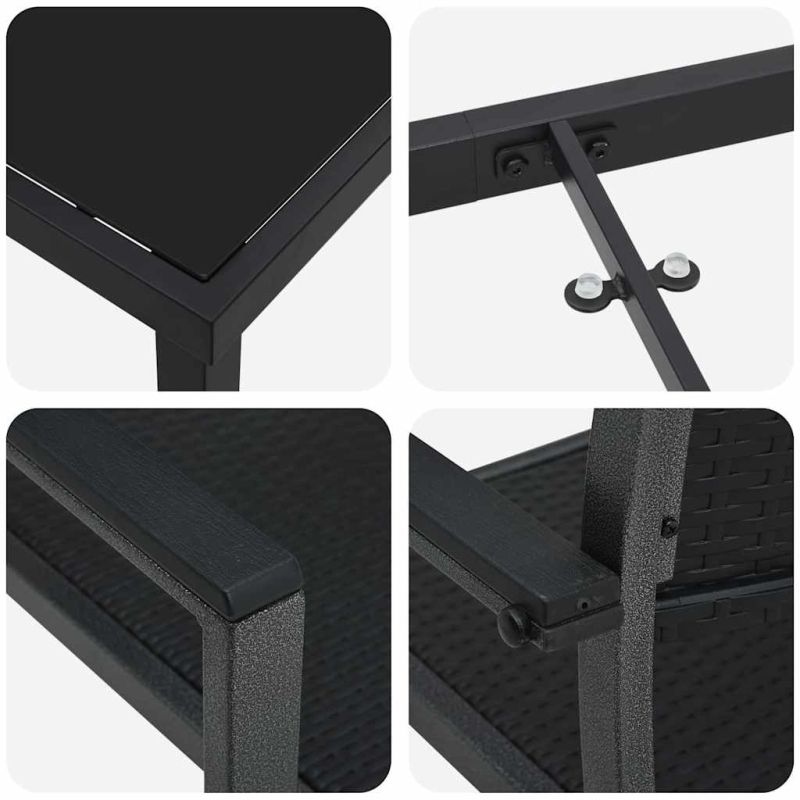 Този градински трапезен комплект е супер стилен и функционален, идеален за всеки външен декор. Модерният черен финиш изглежда страхотно, а комплектът е изработен от устойчиви на времето материали, които осигуряват здравина. Перфектен е за хора, които обичат минималистичния стил и е чудесен за вечеря на открито. Отпуснете се и се насладете на храненето с комплект, който е разработен да е дълготраен и стабилен. Материали: Полиетиленът прави трапезния комплект здрав и издръжлив, а красивият черен оттенък добавя стил. Стоманените рамки и крака са боядисани с прах за допълнителна надеждност, а материалите са изключително устойчиви на UV лъчи, така че комплектът ще издържи на различни атмосферни условия. Включени компоненти: Наслаждавайте се на удобството на подлакътниците и опорите за гърба, които правят този комплект идеален за дълги летни вечери и задушевни разговори под звездите. Те добавят комфорт и усещане за стил при всяко събиране. Функции/Дизайн: Модерният стил е прост и функционален с чисти линии. Комплектът не само изглежда добре, но е и стабилен, което предлага придаване на комфорт при храненето на открито. Препоръчителни употреби: Използвайте този комплект, за да превърнете градината или терасата си в любимо място за събирания или просто за релакс. Той е идеален за пролетни и летни партита, барбекюта и романтични вечери. Грижа и поддръжка: За да запазите трапезния комплект в отлично състояние, покривайте го, когато не го ползвате. Лесното почистване на повърхностите с влажна кърпа също помага да поддържате красив вид, като удължава живота му за години напред. Максимално 110 кг на седалка.