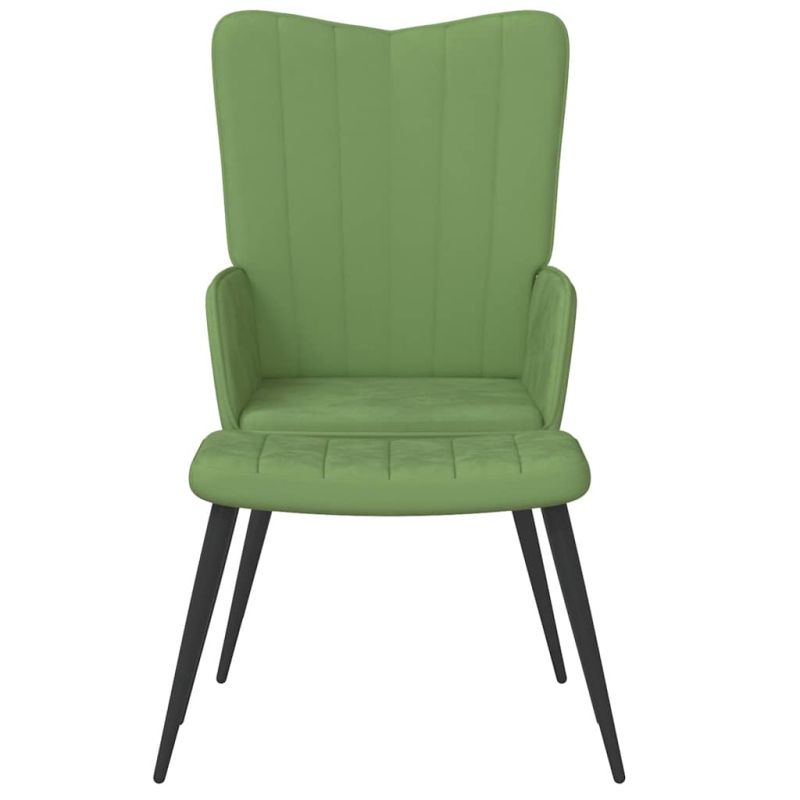 Релаксиращ стол с табуретка, светлозелен, кадифе