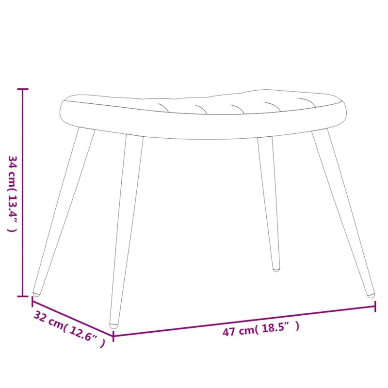 Този релаксиращ стол с табуретка е отлично допълнение към съществуващия ви домашен декор. Този фотьойл с няколко линии на облегалката е естетически приятен. Благодарение на подплатената пяна, тапицирана с меко на допир кадифе, можете да се насладите на оптимален комфорт, докато седите. Поддържан от стоманена рамка, столът за релакс с табуретка е стабилен и издръжлив.