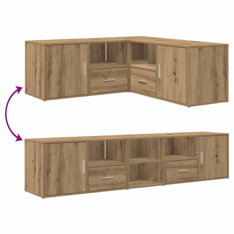 Този ъглов шкаф с практичен дизайн е истински акцент за вашия домашен интериор. Издръжлив материал: Инженерната дървесина е с изключително качество с гладка повърхност и също така се отличава със здравина, стабилност и устойчивост на влага.2 начина на сглобяване: Този ъглов рафт може да се сглоби или в по-широк шкаф, или в L-образен ъглов шкаф, за да отговаря перфектно на вашите изисквания за пространство и съхранение.Достатъчно място за съхранение: Шкафът с отделения и чекмеджета предоставя достатъчно място за съхранение, където да държите различни ваши вещи добре организирани и леснодостъпни.Здрав плот: Шкафът за декорации има здрав плот, върху който можете да поставите вашите декоративни елементи, фотоалбуми или малки растения.Лесна за поддръжка: Благодарение на гладката си повърхност, ъгловият модул се почиства лесно с влажна кърпа и изисква по-малко поддръжка.