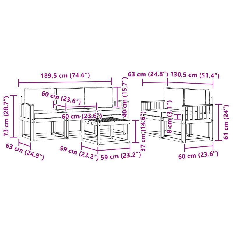 • 5 x Кушон за сядане: 60 x 60 x 8 см (Д x Ш x В)