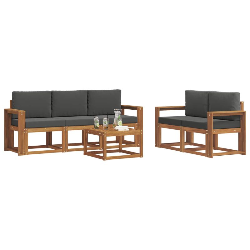 Комплектът за външни мебели съчетава стил и удобство, създавайки впечатляващо място за всяка градина или тераса. Модерният му дизайн с ясни линии и минималистични детайли внася елегантност и поддържа комфорта и социалните събирания на открито. Изработен изцяло от масивна акациева дървесина, комплектът осигурява издръжливост и дълготрайна привлекателност, правейки го прекрасен избор за тези, които искат функционалност и модерен вид. Здрава масивна акациева дървесина: Този комплект мебели е направен от масивна акациева дървесина, известна с устойчивостта си на външни условия. Здравата конструкция осигурява дълготрайна стабилност, а топлият цветен нюанс подхожда на всяка градина или тераса. Устойчив на времето дизайн: С лакирана повърхност, комплектът предлага допълнителна защита от слънце и лек дъжд. Полираното покритие помага да се запази вида му и осигурява дълготрайна употреба във вашата градина или тераса. Характеристики и дизайн: Всяка част е проектирана с внимание към стила и функциите. Структурните елементи предоставят комфорт, а свързаният дизайн гарантира визуално хармонично изглеждащ комплект, идеален за различни случаи на открито. Комфорт и гъвкавост: Модулният дизайн позволява различни конфигурации, подходящи за всякакви нужди. Перфектен за почивка, социални срещи или тихи моменти с книга, комплектът се адаптира лесно към всяка обстановка. Лесна поддръжка: За да запазите мебелите в отлично състояние, почиствайте с влажна кърпа и избягвайте агресивни препарати. Редовната грижа удължава живота на мебелите и запазва добрия вид.