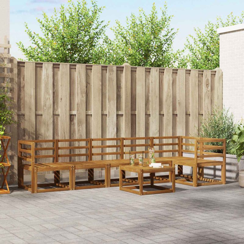 Този комплект мебели за градината е съвременно решение за нуждите ти на открито. Комбинира стил и функционалност, подходящи за градина, патия, задни дворове или около басейна. Изработен от здрава акациева дървесина и с модерен ламелен дизайн, той предлага изчистена и деликатна естетика. Кафявият цвят пасва на различни открити декори, а модулната структура позволява лесно да персонализираш местата според повода. Материали: Изработен от масивна акациева дървесина, този комплект акцентира на здравина и естествена красота. Акациевата дървесина е супер устойчивa на елементи, което я прави идеална за градински мебели. Осигурява дълготрайна употреба без много грижи, запазвайки формата си с времето. Включени компоненти: Комплектът включва ламелна облегалка и фиксирана рамка в стилен дизайн. Всички елементи, включително гърба и подлакътниците, са изработени от същата акациева дървесина, което придава последователност на дизайна. Тези детайли осигуряват персонализирано изживяване на открито, съчетавайки визия с функционалност. Функции / Дизайн: Комплектът е проектиран да устоява на всякакви метеорологични условия - дъжд, UV лъчи и температурни колебания. Модулният дизайн позволява пренареждане, което ти дава гъвкавост и разнообразие в създаването на уютно пространство, с стил и практичност. Препоръчителни употреби: Идеален за градини, патии, задни дворове или около басейна, комплектът е прекрасно място за релакс, гостоприемство или вечерни разговори на открито. Той е адаптивен и създава приятно пространство, което да допълва различни стилове. Поддръжка: За да изкараш по-дълго от комплекта, използвай покривало за мебели, когато не е в употреба и не го оставяй дълго на пряка слънчева светлина. Често го чисти с влажна кърпа, за да изглежда свеж и привлекателен. Тези лесни стъпки осигуряват дълготрайността и комфорта на мебелите.