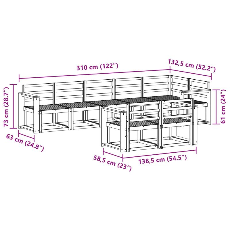 • 7 x среден диван: 59 x 63 x 73 см (Д x Ш x В)