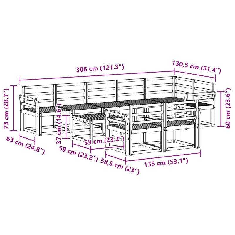 Този комплект за открит ъглов диван съчетава модерен стил с практичност. С изчистен дизайн и грациозни линии, той е идеален за всяка открита среда, създавайки уютно местенце за релакс. С ламелен гръб и рамка, диванът предлага удобно място за сядане. Лесно можете да направите всяко пространство свой личен оазис, съчетавайки елегантност с практичност. Насладете се на природата и релакса с този диван. Материал от масивна акация: Този диван е направен от качествена масивна акациева дървесина, която е здрава и устойчива на времето, така че ще изглежда добре дълго време. Модулна конфигурация: Всеки сегмент на дивана може да бъде преместен, така че да можете да го наредите както вие искате. Това ви дава гъвкавост да създавате различни подредби за всякакви поводи – било то за развлечения или уютни вечери. Устойчивост на времето: Диванът е проектиран да издържа на различни климатични условия, идеален за градини и патио. Устойчив е на избледняване и износване от слънце, вятър и дъжд, така че ще бъде привлекателен всеки сезон. Комфорт на ламелния гръб: Ламелните облегалки предлагат удобна поддръжка, така че вие и вашите гости да се чувствате прекрасно, докато се наслаждавате на времето на открито. Грижа и поддръжка: За да запазите дивана в добро състояние, използвайте покривало, когато не го ползвате, и периодично избърсвайте с влажна кърпа, за да се отървете от праха. Това ще ви помогне да запазите цвета и естетиката му дълго време.