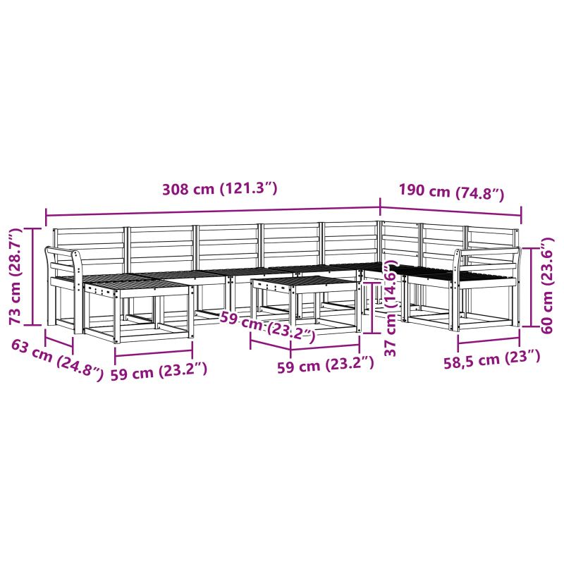 Този комплект секционни дивани е създаден, за да внесе модерен стил в градината, патиото или зоната около басейна. Изработен е от масивна акациева дървесина с топъл кафяв оттенък, който прекрасно се съчетава с цветята на открито. Независимо дали като самостоятелен елемент или като част от по-голямо разположение, стилната му форма и чистите линии предлагат комфорт и стил. Идеален е за почивка и социализация, предоставя удобство на сядане, което лесно се вписва в различни открити теми. Масивна Акациева Дървесина: Изработен от качествена масивна акациева дървесина, предлагаща здравина за открити условия. Дървото е устойчиво на мухъл и насекоми, което го прави идеален избор за всяка среда. Дълготрайността му е гарантирана благодарение на устойчивостта на времето, като запазва своя привлекателен вид сезон след сезон. Модулна Гъвкавост: С модулния си дизайн, комплектът позволява разнообразни разположения, напълно адаптивни за вашето пространство. Всяка част може да бъде настроена, в зависимост от нуждите ви, независимо дали става въпрос за уютен кът или голяма зона за забавления. Лесното пренареждане осигурява оптимална конфигурация за всякакви поводи. Дизайн с Ламели: Ламелите предлагат стил и добра циркулация на въздуха, като ви държат хладни през горещите дни. Ергономичният дизайн осигурява удобно местоположение за сядане, отлично за продължителни срещи. Редовната форма на ламелите добавя визуален чат в съвременната естетика. Вградени Подлакътници: Със здрави подлакътници от масивна акациева дървесина, проектирани за удобство. Широките им форми са идеални за поставяне на напитки или малки вещи. Тази функция увеличава удобството, правейки ги отличен избор за комфорт на открито. Лесна Поддръжка: Създаден за безпроблемно поддържане, комплектът изисква минимално внимание. Просто избърсвайте с влажна кърпа, за да премахнете праха и ползвайте покривала, за да го предпазите от пряка слънчева светлина или лоши климатични условия.