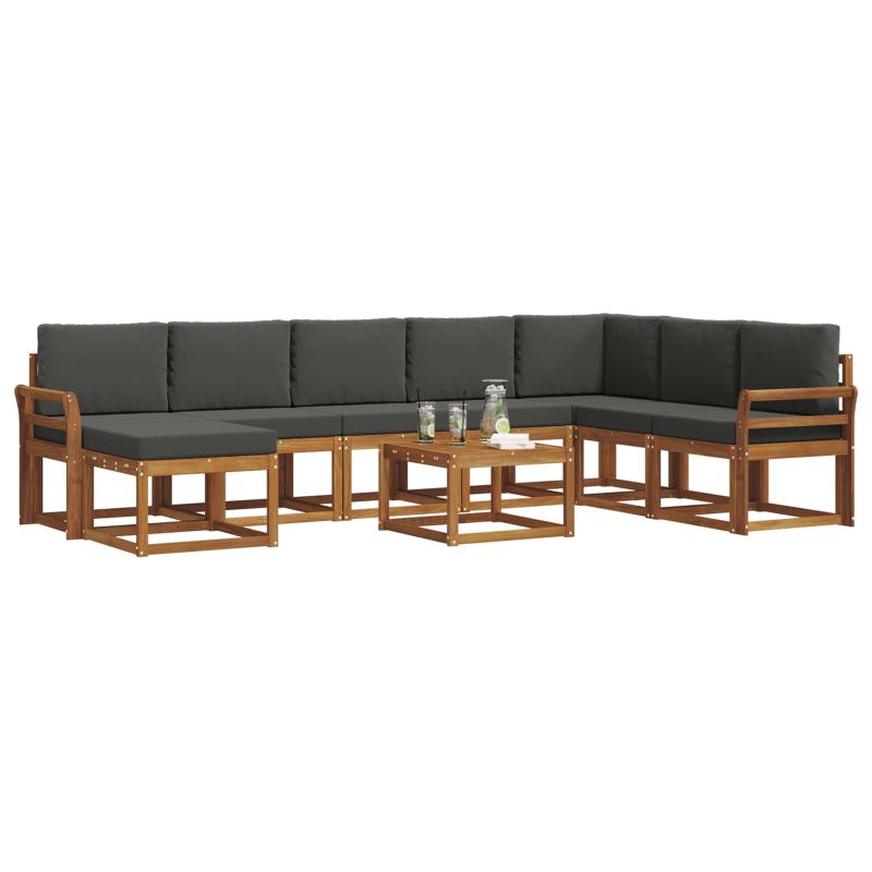 Този комплект секционни дивани е създаден, за да внесе модерен стил в градината, патиото или зоната около басейна. Изработен е от масивна акациева дървесина с топъл кафяв оттенък, който прекрасно се съчетава с цветята на открито. Независимо дали като самостоятелен елемент или като част от по-голямо разположение, стилната му форма и чистите линии предлагат комфорт и стил. Идеален е за почивка и социализация, предоставя удобство на сядане, което лесно се вписва в различни открити теми. Масивна Акациева Дървесина: Изработен от качествена масивна акациева дървесина, предлагаща здравина за открити условия. Дървото е устойчиво на мухъл и насекоми, което го прави идеален избор за всяка среда. Дълготрайността му е гарантирана благодарение на устойчивостта на времето, като запазва своя привлекателен вид сезон след сезон. Модулна Гъвкавост: С модулния си дизайн, комплектът позволява разнообразни разположения, напълно адаптивни за вашето пространство. Всяка част може да бъде настроена, в зависимост от нуждите ви, независимо дали става въпрос за уютен кът или голяма зона за забавления. Лесното пренареждане осигурява оптимална конфигурация за всякакви поводи. Дизайн с Ламели: Ламелите предлагат стил и добра циркулация на въздуха, като ви държат хладни през горещите дни. Ергономичният дизайн осигурява удобно местоположение за сядане, отлично за продължителни срещи. Редовната форма на ламелите добавя визуален чат в съвременната естетика. Вградени Подлакътници: Със здрави подлакътници от масивна акациева дървесина, проектирани за удобство. Широките им форми са идеални за поставяне на напитки или малки вещи. Тази функция увеличава удобството, правейки ги отличен избор за комфорт на открито. Лесна Поддръжка: Създаден за безпроблемно поддържане, комплектът изисква минимално внимание. Просто избърсвайте с влажна кърпа, за да премахнете праха и ползвайте покривала, за да го предпазите от пряка слънчева светлина или лоши климатични условия.
