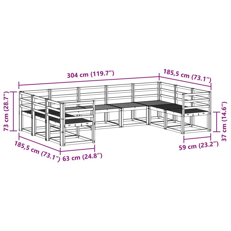 • 7 x среден диван: 59 x 63 x 73 см (Д x Ш x В)