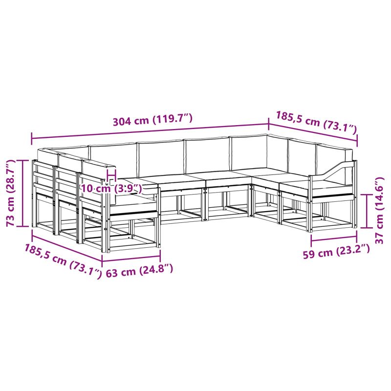 Комплект градински секции с диван лесно съчетава простота и функционалност, добавяйки модерен щрих на вашата тераса или до басейна. С дизайн, който подчертава чистите линии, той е идеален за тези, които искат стилни и практични мебели за открито. Създава спокойна атмосфера и е чудесен за неформални срещи и уютни вечери. Материали: От първокласна масивна акациева дървесина, предлагаща красив и устойчив на повреди вид, вдъхновен от природата. Естественият цвят придава чар, докато здравината осигурява дълготрайност. Включени компоненти: Имате здрави решетъчни рамки и удобни подлакътници за комфорт, с модулен дизайн за пренареждане по желание. Стабилната решетъчна рамка поддържа здрави седални повърхности. Характеристики / Функция / Дизайн: Секционният диван прави комфорта си с адаптивен модулен дизайн. С ергономични подлакътници осигурява удобно сядане, идеално за дълги часове навън. Препоръчителни приложения: Идеален е за градини, тераси и около басейна, адаптира се лесно за събирания с приятели или уютни вечери. Грижа и поддръжка: За максимален живот използвайте предпазно покривало при лошо време и почиствайте с влажна кърпа. Избягвайте продължителна пряка слънчева светлина, за да запазите цвета на дървото.