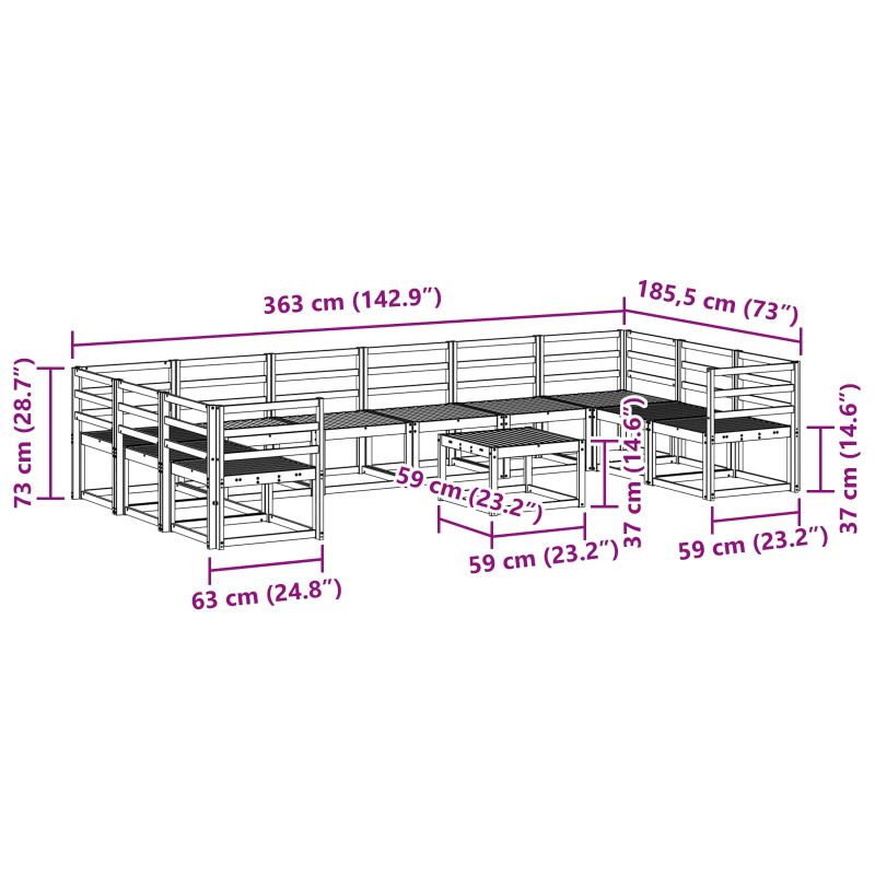 Комплект дивани за открито 11 pcs Естествен