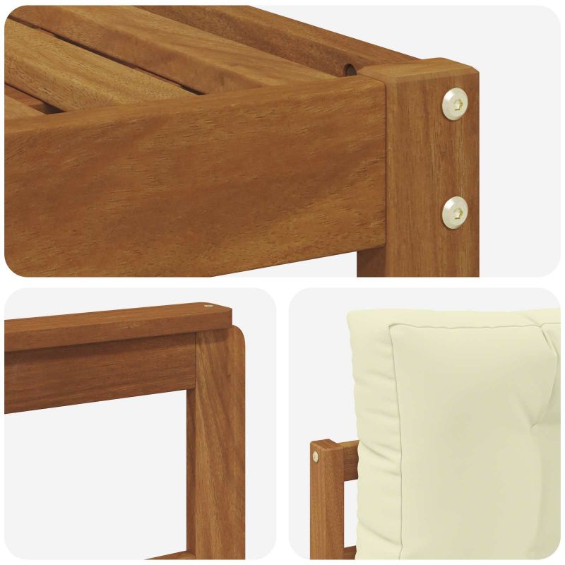 Този модерен комплект за външен хол е олицетворение на съвременния живот на открито, съчетавайки стилен дизайн с практичност. Идеален за спокойствие в градините, патиота или около басейни, комплектът излъчва уютна атмосфера с чистите си линии и минималната си декорация. Естественият кафяв вид на акациевата дървесина допълва всяко открито пространство, поканвайки ви да се отпуснете в комфорта му. Материал от масивна акациева дървесина: Комплектът е изработен от масивна акациева дървесина, с която изглежда органично и привлекателно; дървото е издръжливо на атмосферни условия, така че го прави подходящо за всякакви събития, без да губи привлекателността си. Рамка от ламели и дизайн на гърба: С фиксирана ламелна рамка, канапето предлага удобство и стабилност, а ламелният гръб поддържа комфортно изправено седене. Модерен стил: Определен от простота и функционалност, този комплект за хол излъчва модерен вид. Лесно се вписва в много открити пространства, добавяйки стил. Устойчиви на атмосферни влияния характеристики: Произведен да устоява на различни метеорологични условия, комплектът запазва формата и функцията си при слънчеви, дъждовни или ветровити дни. Грижа и поддръжка: За дълъг живот на комплекта, покривайте го, когато не го използвате и го дръжте далеч от пряка слънчева светлина. Избърсвайте с влажна кърпа, за да го запазите свеж; лесен е за поддържане.