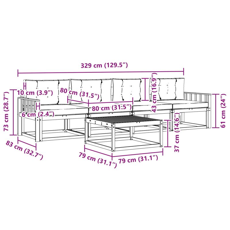 Този модерен комплект за външен хол е олицетворение на съвременния живот на открито, съчетавайки стилен дизайн с практичност. Идеален за спокойствие в градините, патиота или около басейни, комплектът излъчва уютна атмосфера с чистите си линии и минималната си декорация. Естественият кафяв вид на акациевата дървесина допълва всяко открито пространство, поканвайки ви да се отпуснете в комфорта му. Материал от масивна акациева дървесина: Комплектът е изработен от масивна акациева дървесина, с която изглежда органично и привлекателно; дървото е издръжливо на атмосферни условия, така че го прави подходящо за всякакви събития, без да губи привлекателността си. Рамка от ламели и дизайн на гърба: С фиксирана ламелна рамка, канапето предлага удобство и стабилност, а ламелният гръб поддържа комфортно изправено седене. Модерен стил: Определен от простота и функционалност, този комплект за хол излъчва модерен вид. Лесно се вписва в много открити пространства, добавяйки стил. Устойчиви на атмосферни влияния характеристики: Произведен да устоява на различни метеорологични условия, комплектът запазва формата и функцията си при слънчеви, дъждовни или ветровити дни. Грижа и поддръжка: За дълъг живот на комплекта, покривайте го, когато не го използвате и го дръжте далеч от пряка слънчева светлина. Избърсвайте с влажна кърпа, за да го запазите свеж; лесен е за поддържане.