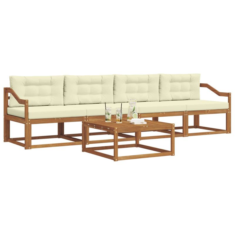 Комплект дивани за открито 5 pcs Натурален и Крема