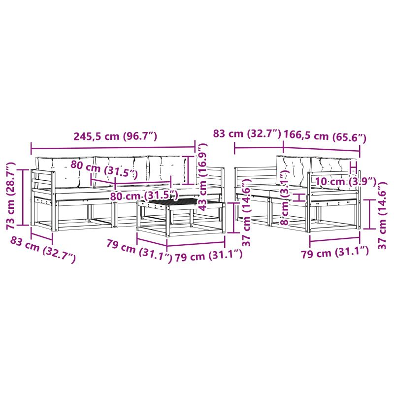 • 5 x Среден диван: 79 x 83 x 73 см (Д x Ш x В)