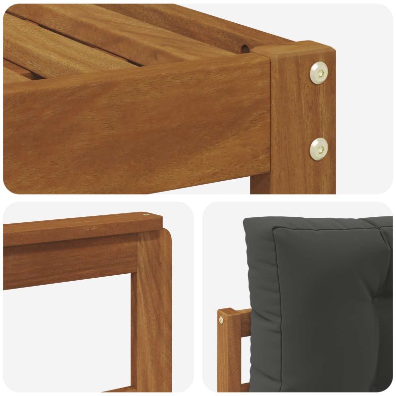 Този комплект за външно секционно канапе преобразява всяка градина или тераса в приятно място за релаксация. С модерен стил, той лесно се вписва в откритите пространства. Приветливият решетъчен дизайн позволява на въздуха да преминава, създавайки уютна атмосфера за разговори под слънцето или вечеринки под звездите. Масивна акациева дървесина: Комплектът е изграден от масивна акациева дървесина, устойчива на времето и с дълготрайна красота. Топлите оттенъци придават стил и надеждност, които отлично украсяват всяко открито пространство. Структура и дизайн: С красиво проектиран решетъчен гръб и здрава рамка, комплектът съчетава елегантност и здравина. Ръцете, облегалките и седалките са от масивна акациева дървесина, предлагайки устойчив вид и комфорт. Модулна функционалност: Лесно променяйте подредбите благодарение на иновативния модулен дизайн. Всяка част е с поддържаща облегалка и решетъчен дизайн, добавящи комфорт и стил. Препоръчва се за външен монтаж: Идеален за градини, тераси и около басейни, комплектът предлага спокойствие и дълговечност, правейки го отличен избор за всеки, който иска да се наслади на времето навън. Поддръжка: За да поддържате комплекта в отлично състояние, избягвайте пряка слънчева светлина и използвайте покривало, когато не е в употреба. Избърсвайте редовно с влажна кърпа, за да запазите вида му и да осигурите дълъг живот.