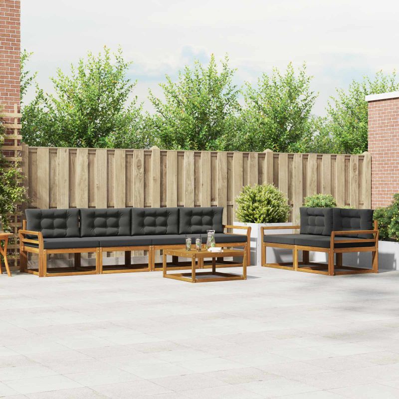 Този комплект за външно секционно канапе преобразява всяка градина или тераса в приятно място за релаксация. С модерен стил, той лесно се вписва в откритите пространства. Приветливият решетъчен дизайн позволява на въздуха да преминава, създавайки уютна атмосфера за разговори под слънцето или вечеринки под звездите. Масивна акациева дървесина: Комплектът е изграден от масивна акациева дървесина, устойчива на времето и с дълготрайна красота. Топлите оттенъци придават стил и надеждност, които отлично украсяват всяко открито пространство. Структура и дизайн: С красиво проектиран решетъчен гръб и здрава рамка, комплектът съчетава елегантност и здравина. Ръцете, облегалките и седалките са от масивна акациева дървесина, предлагайки устойчив вид и комфорт. Модулна функционалност: Лесно променяйте подредбите благодарение на иновативния модулен дизайн. Всяка част е с поддържаща облегалка и решетъчен дизайн, добавящи комфорт и стил. Препоръчва се за външен монтаж: Идеален за градини, тераси и около басейни, комплектът предлага спокойствие и дълговечност, правейки го отличен избор за всеки, който иска да се наслади на времето навън. Поддръжка: За да поддържате комплекта в отлично състояние, избягвайте пряка слънчева светлина и използвайте покривало, когато не е в употреба. Избърсвайте редовно с влажна кърпа, за да запазите вида му и да осигурите дълъг живот.