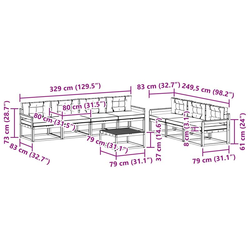 • 7 x Среден диван: 79 x 83 x 73 см (Д x Ш x В)