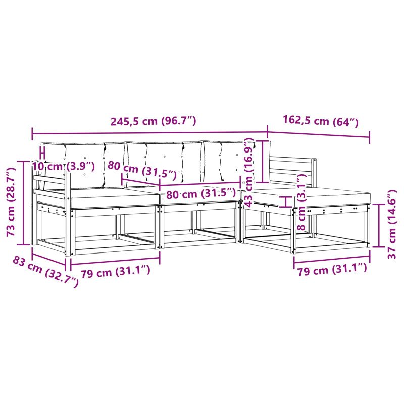 • 4 x Седалка: 80 x 80 x 8 см (Д x Ш x В)