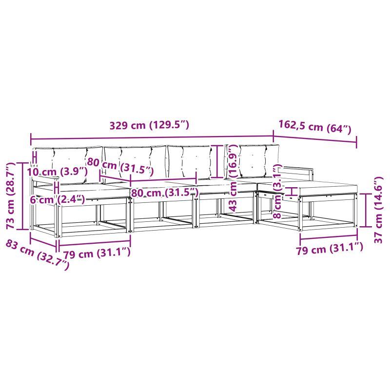 • 4 x Среден диван: 79 x 83 x 73 см (Д x Ш x В)